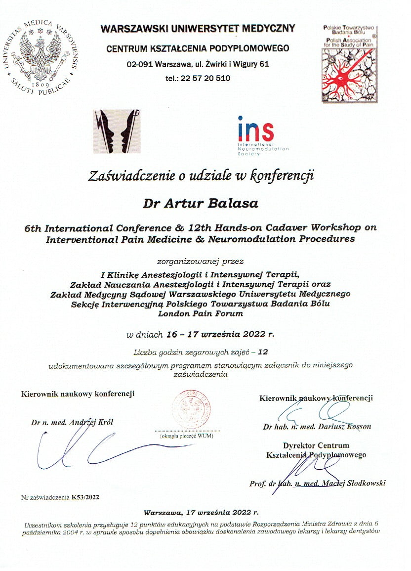 Nieustannie dążę do rozwoju moich umiejętności, aby zapewnić Ci kompleksową i skuteczną opiekę operacyjną. Przykładam dużą wagę do ciągłego doskonalenia się poprzez uczestnictwo w międzynarodowych konferencjach i szkoleniach z zakresu neurochirurgii, które odbywają się m.in. we Francji, Niemczech, Holandii, Włoszech, Finlandii i wielu innych miejscach. Dzięki temu jestem na bieżąco z najnowszymi osiągnięciami i technikami chirurgicznymi, które mogą przynieść ulgę i poprawę Twojego zdrowia.